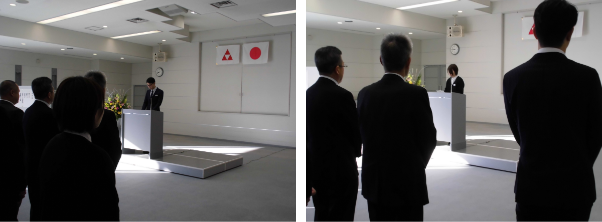 当社では毎年関係社員がサンリンホールに集まり、新年のスタートを祝います。社員一同が決意を新たに固める式として、1年の幕開けにふさわしく厳かに執り行われます。