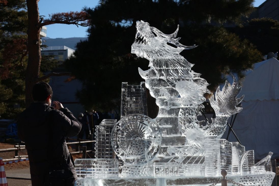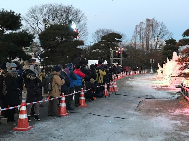 この時間帯には、カメラを持った氷彫刻愛好家の方がたくさん集まってきます。