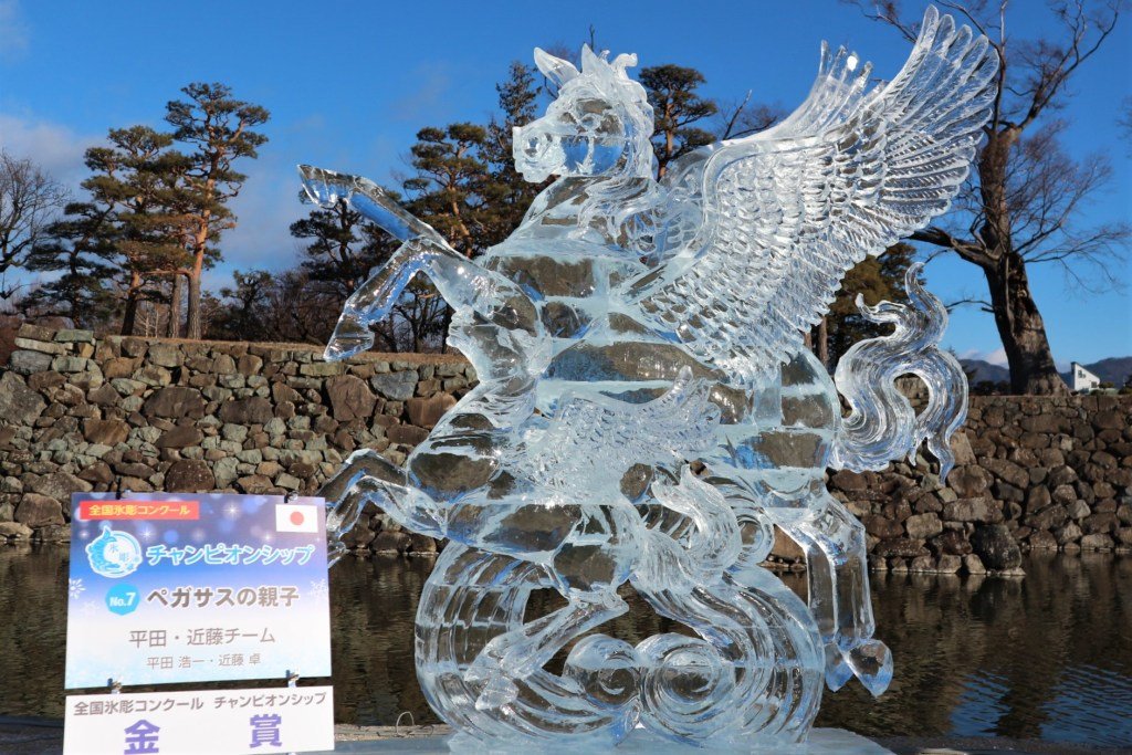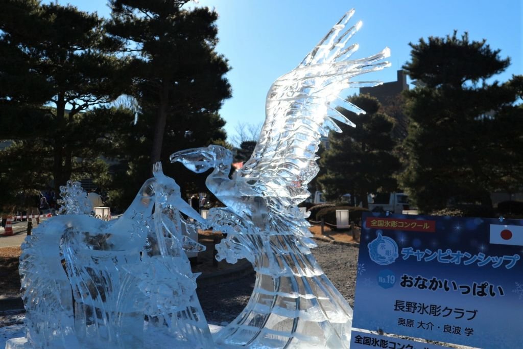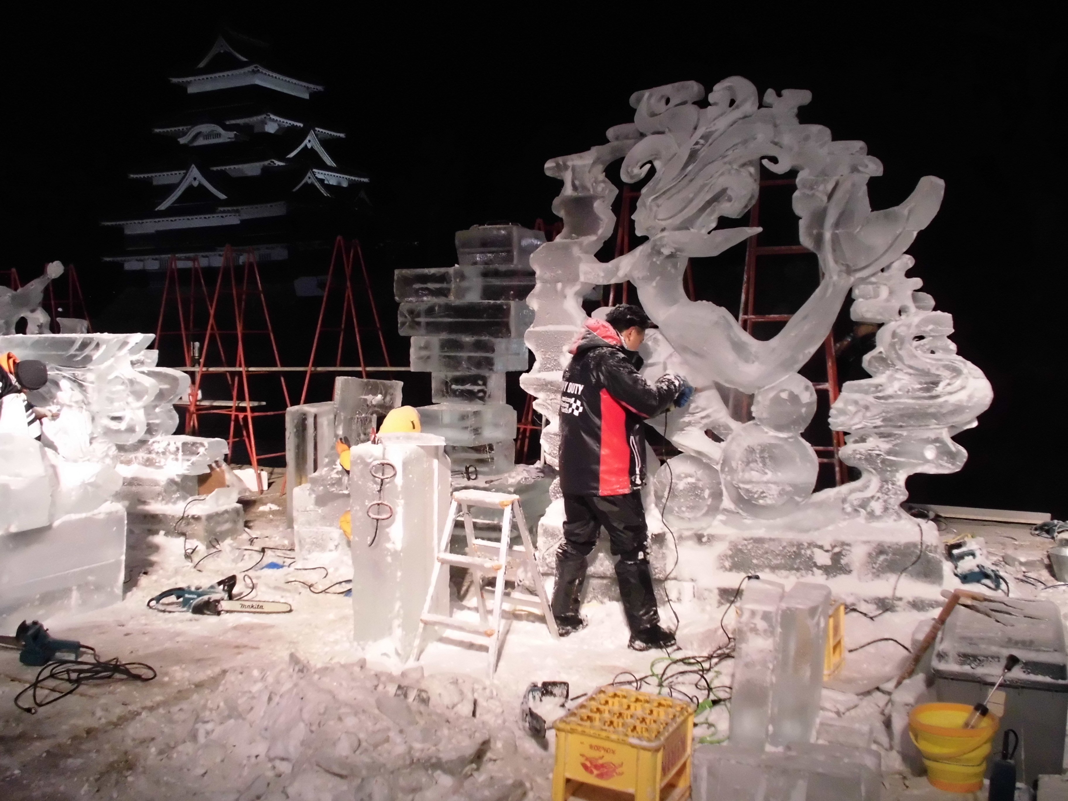 氷彫を制作するのに適した松本の冬の寒さと、松本城を背景とした作品の美しさが口コミで広まり、今では全国からトップレベルの選手が集まるコンテストになりました。