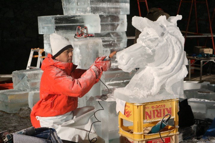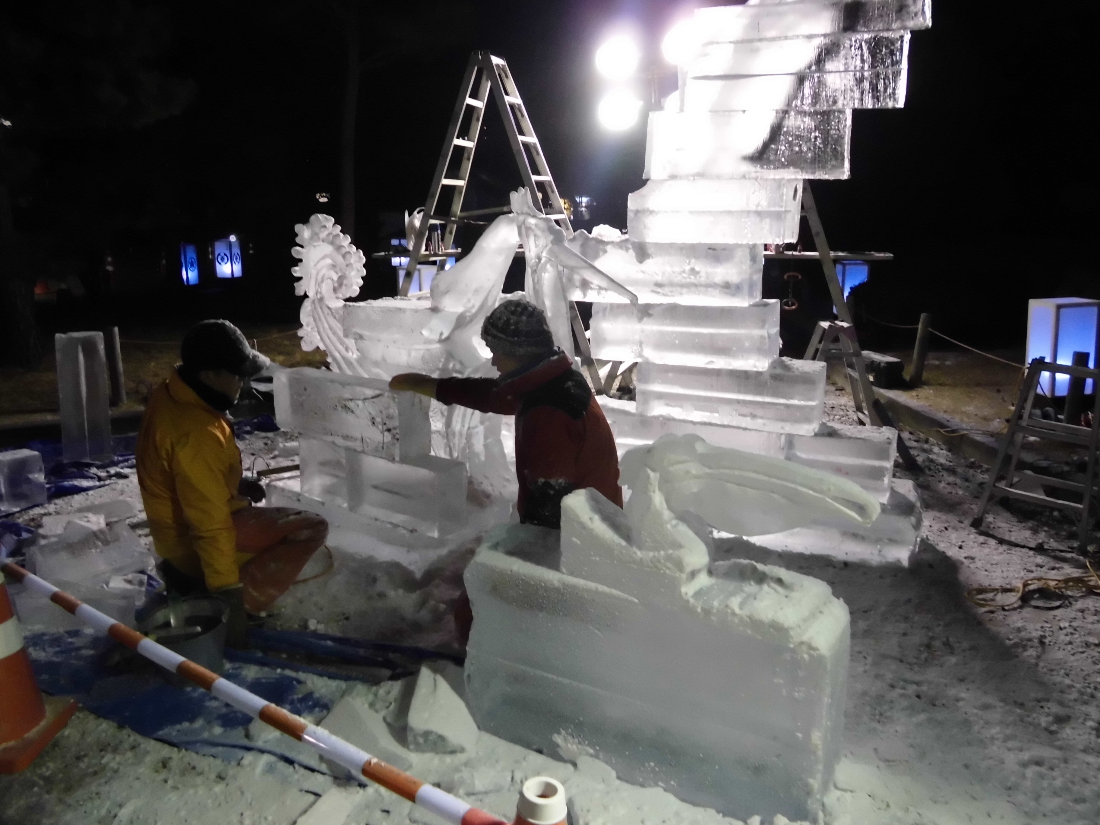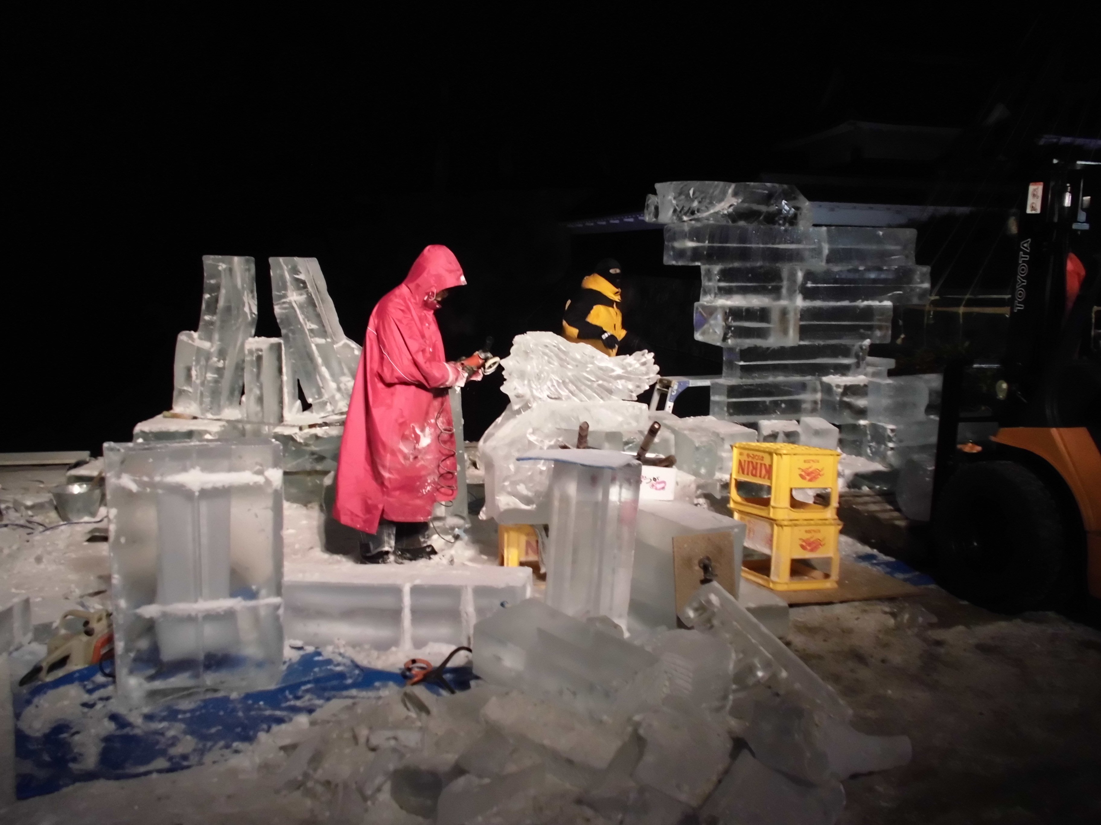 私は、ここ数年氷彫フェスティバルを楽しみに見学していますが、作品の形が見えてくるこの時間が大好きです。