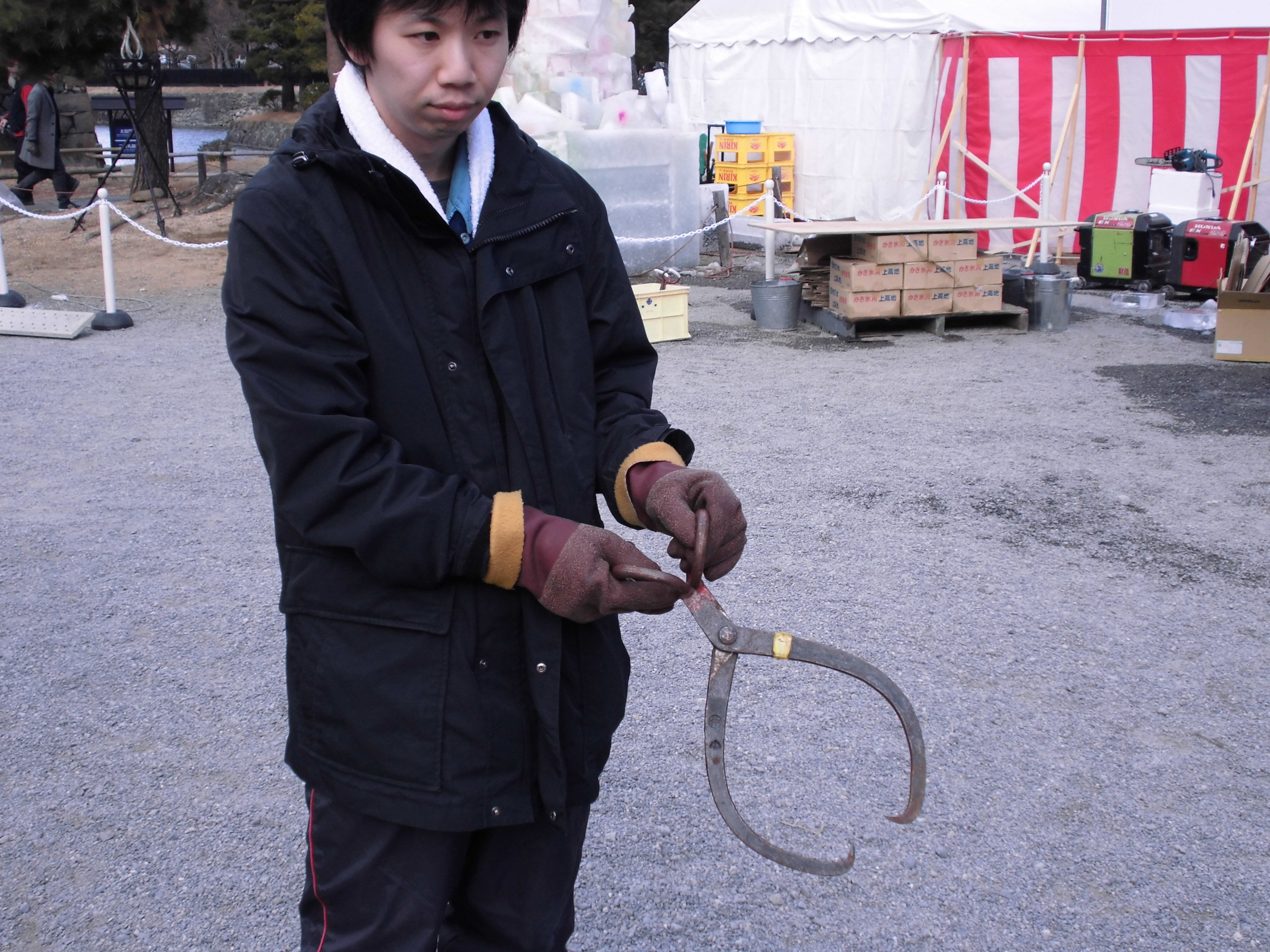 この氷の塊がこれから芸術的な作品に変わると思うと、なんだか不思議な気持ちになります。
