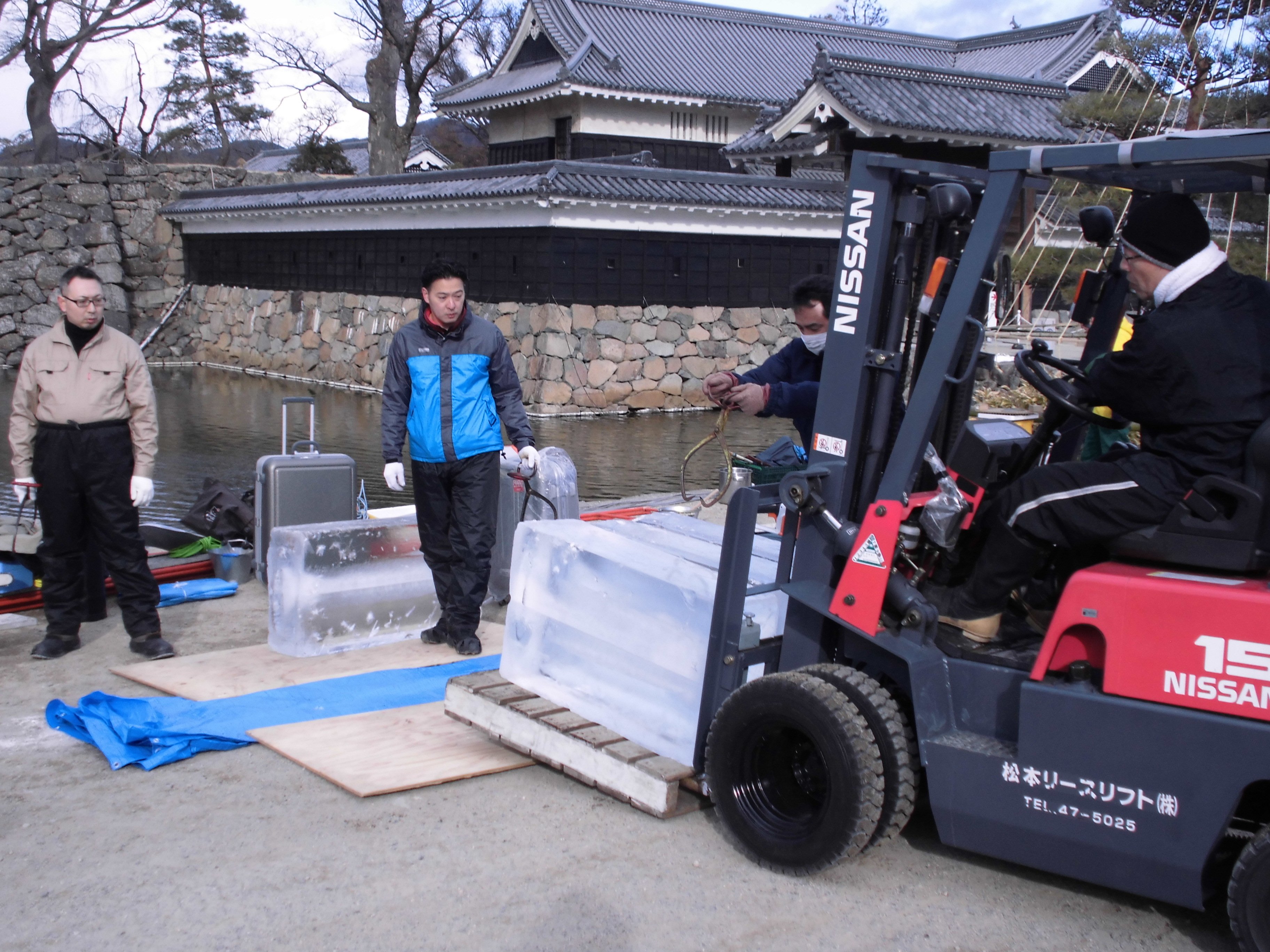 アルプスの天然水を使ったI&Fの氷は透明度が高く、氷柱の大きさも均一で、毎年彫刻家の皆さんからの評判も上々です。