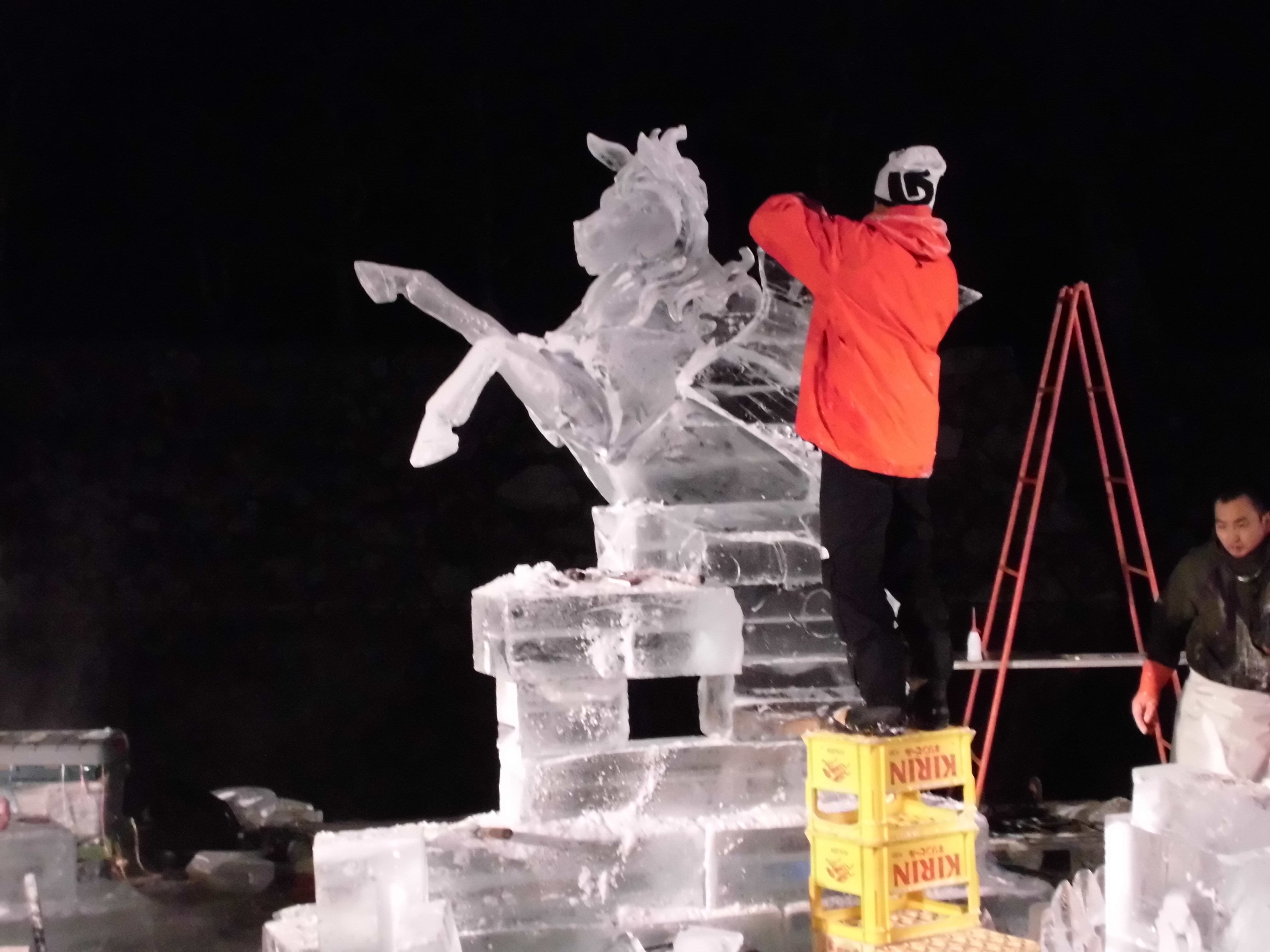 昨日までの氷の塊が、一晩で芸術作品に変わることに本当に驚いてしまいます。