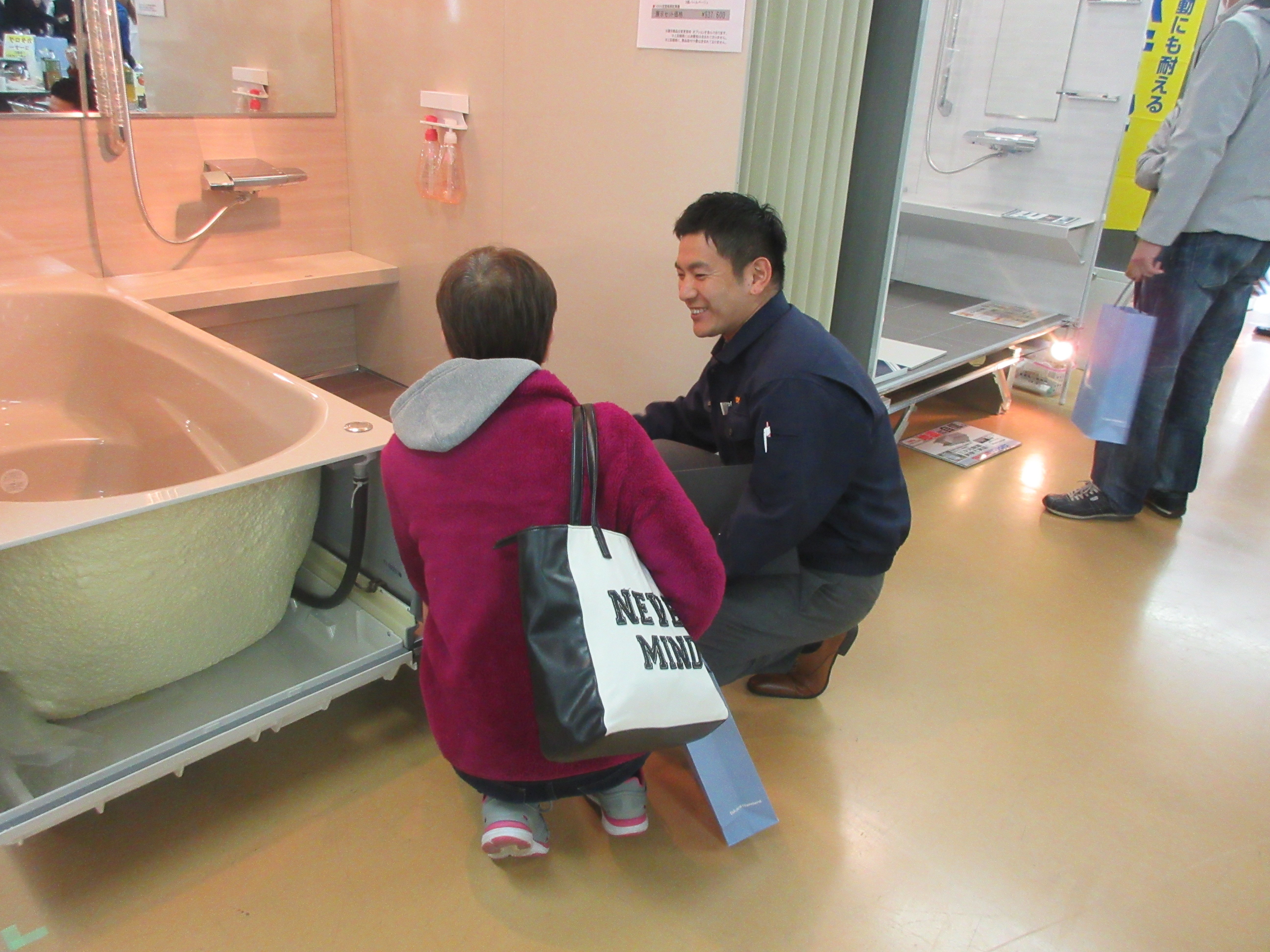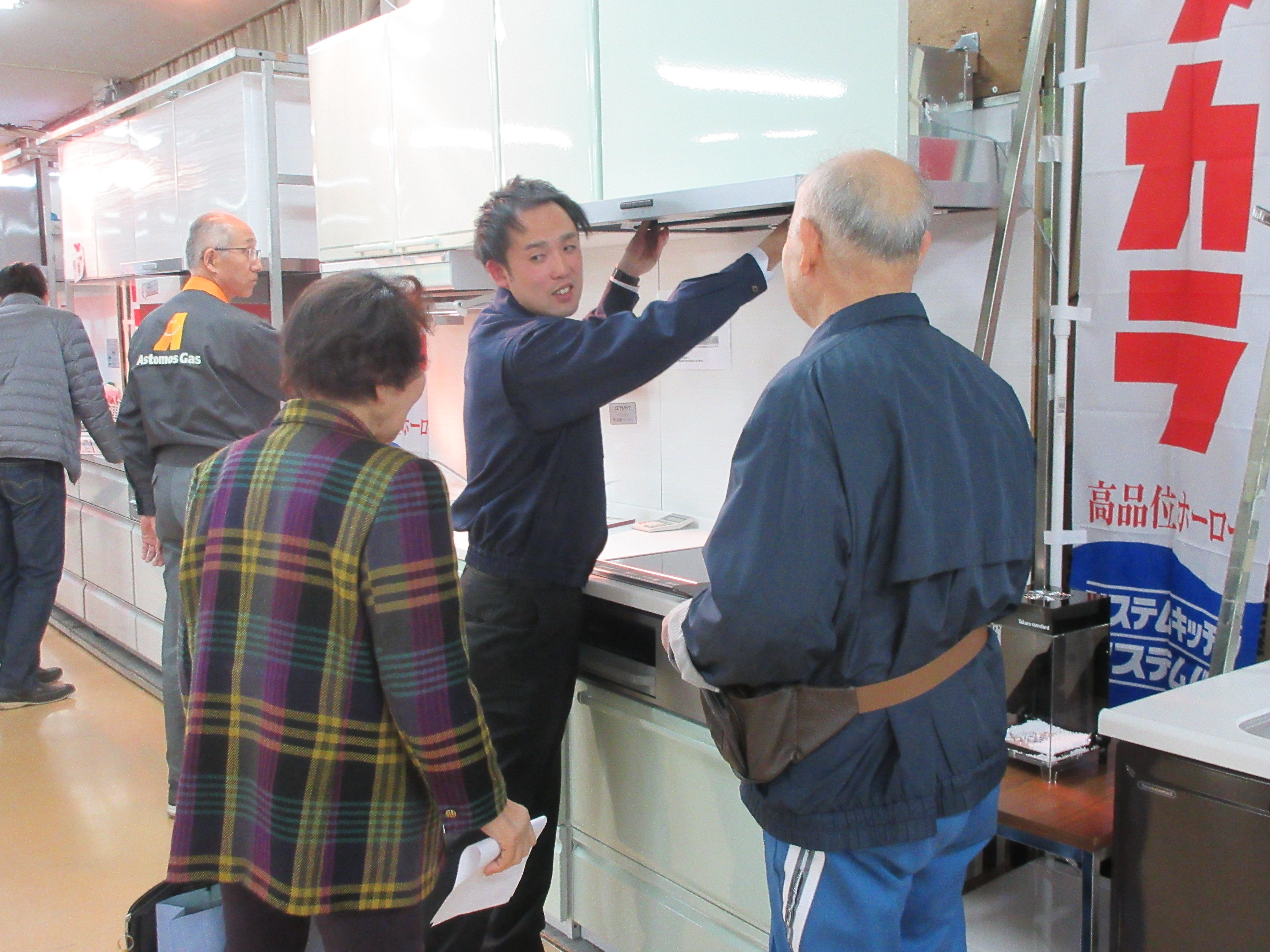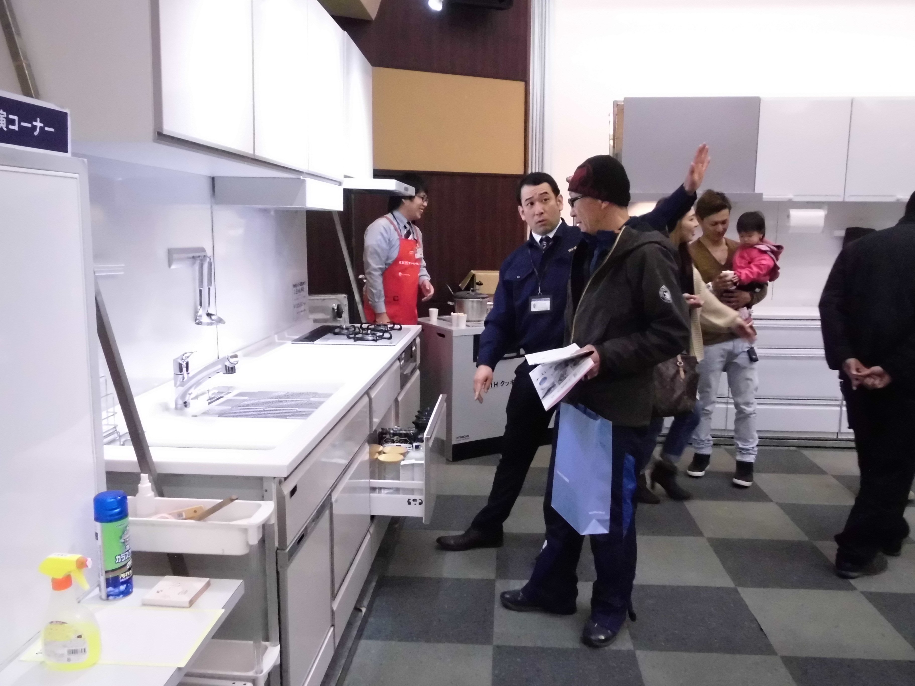 私が会場で目にしたある商談では、建設会社から「狭いから無理」という理由で対面キッチンを断られたお客様に対して、当社の社員が一生懸命にヒアリングをしていました。