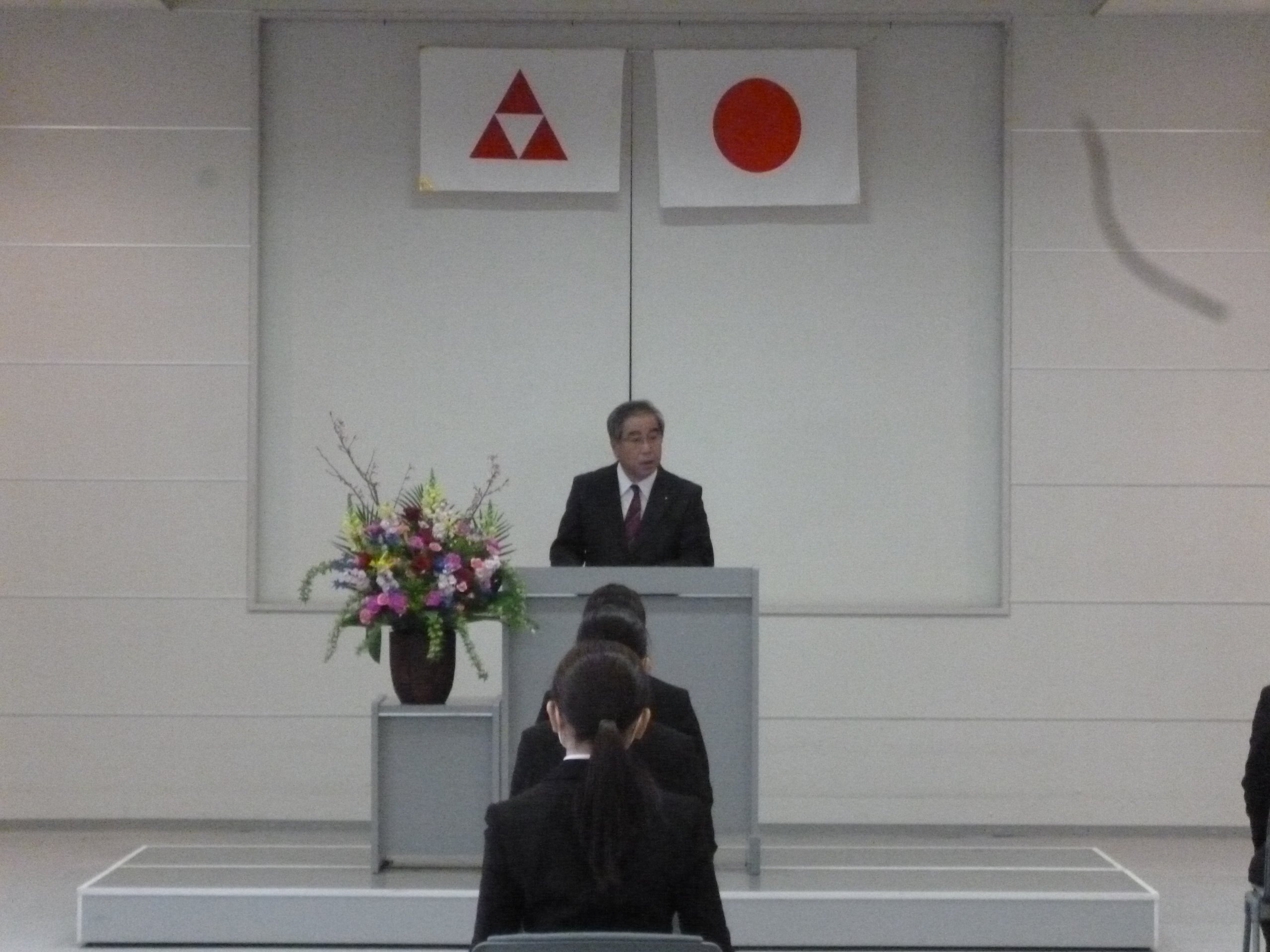 続いて 『社会人として信用される人間になること、社員一人ひとりの信用、信頼、着実な成長こそが、当社の発展を支えると言っても過言ではありません。地域密着型の生活関連総合商社として、「事業は人なり」との認識のもと、先輩達が築き上げてきた信用、信頼を壊さぬよう、コンプライアンスを遵守し、誠実に仕事を進め、あらゆる経験は必ず糧になると信じ、目の前の仕事に全力で取り組んで欲しい。基本に忠実でありつつも、素朴な疑問を大切にし、困難な課題にも積極的に挑戦しながら、力を身に着けてほしい』 との言葉が贈られました。