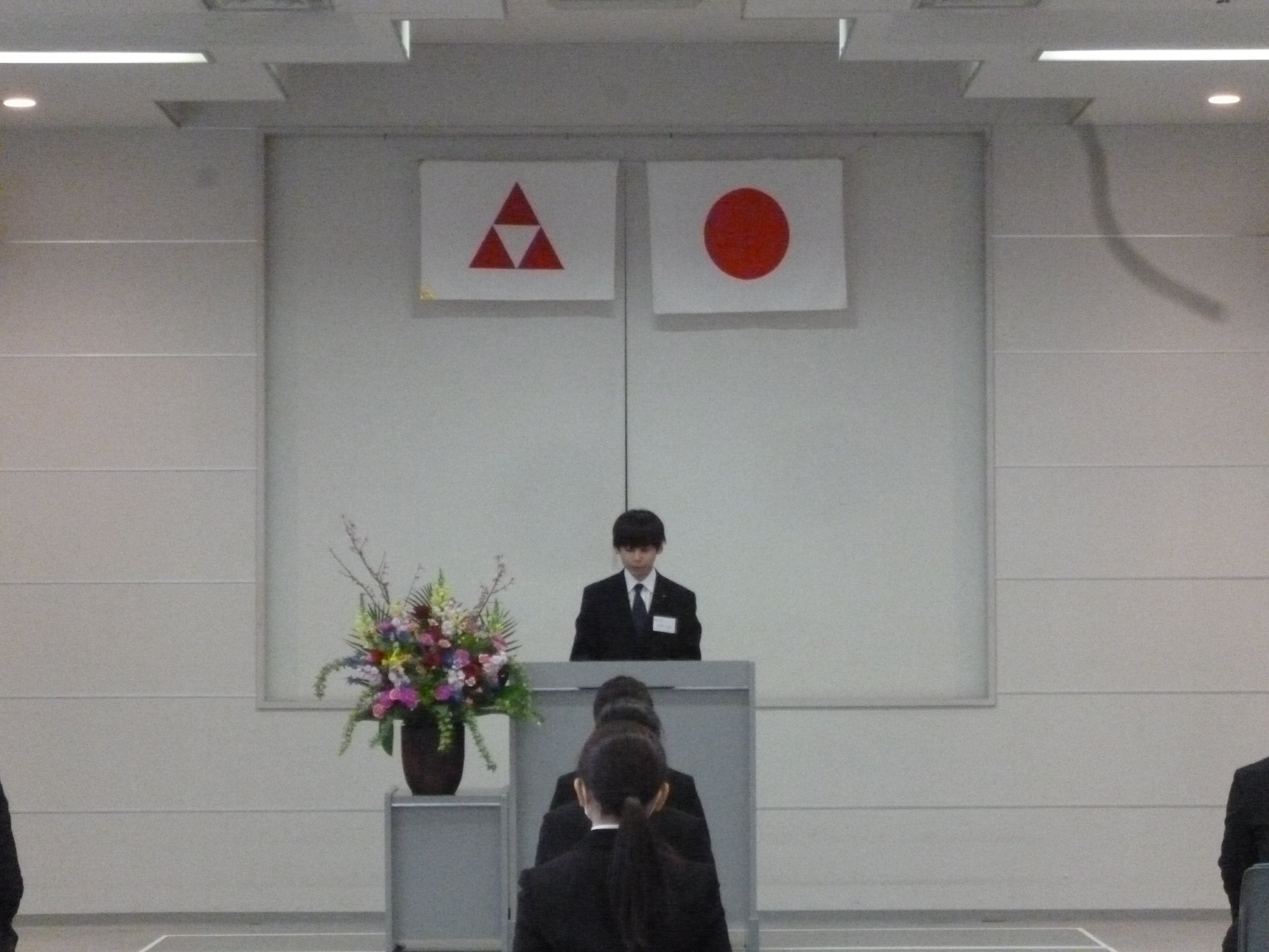 新入社員代表であるウェルカムステーション給油所配属の矢口遼さんからは『今日晴れてサンリン株式会社の社員としてこの場に立てていることの感激と誇りを忘れず、会社の将来を担うべく一生懸命努力していきたい』と頼もしい答辞を頂きました。