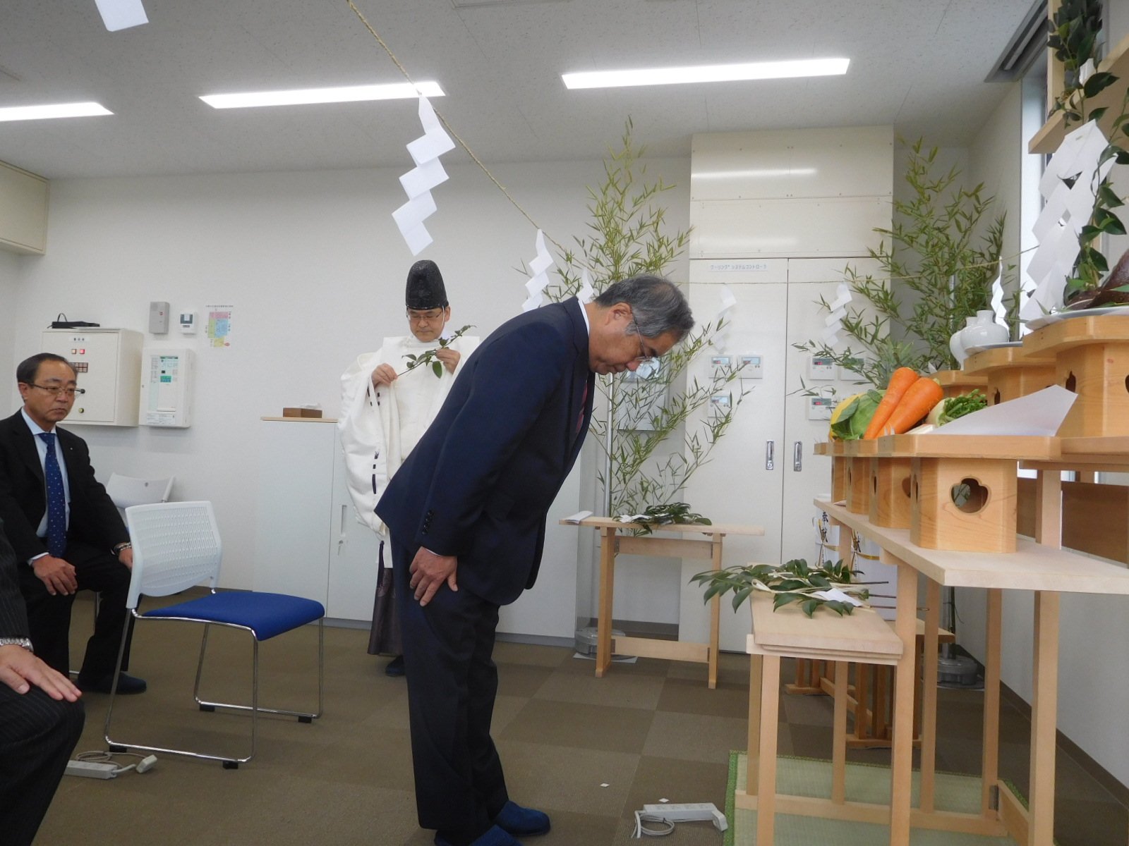四柱神社より宮坂宮司をお招きして厳かな雰囲気の中で、今後の無事故と商売繁盛を祈念して神事を執り行いました。