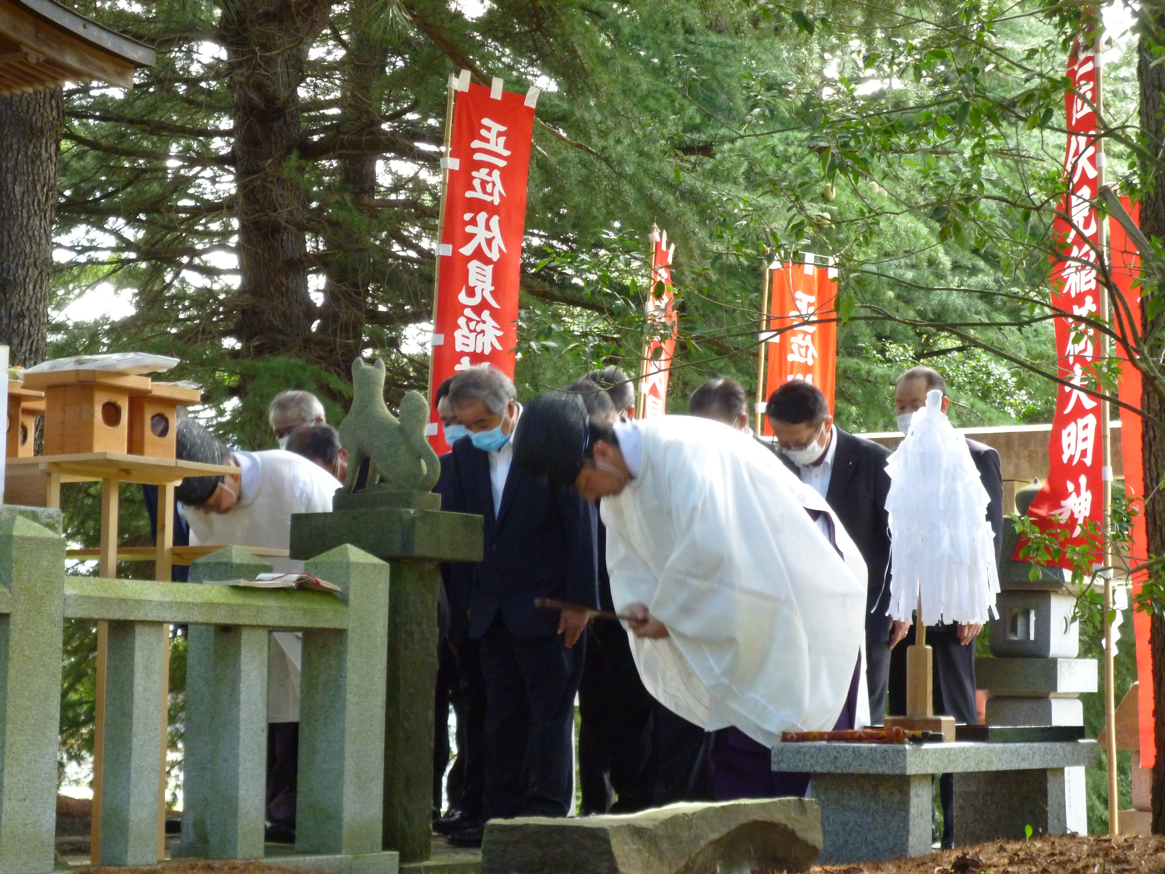 その歴史は古く、旧長野煉豆炭工場敷地内に会社設立当初より祀(まつ)られ、昭和29年10月に京都の伏見稲荷大明神からその分神を勧請して新しい祠(ほこら)を建て、毎年9月に例大祭を執り行っておりました。