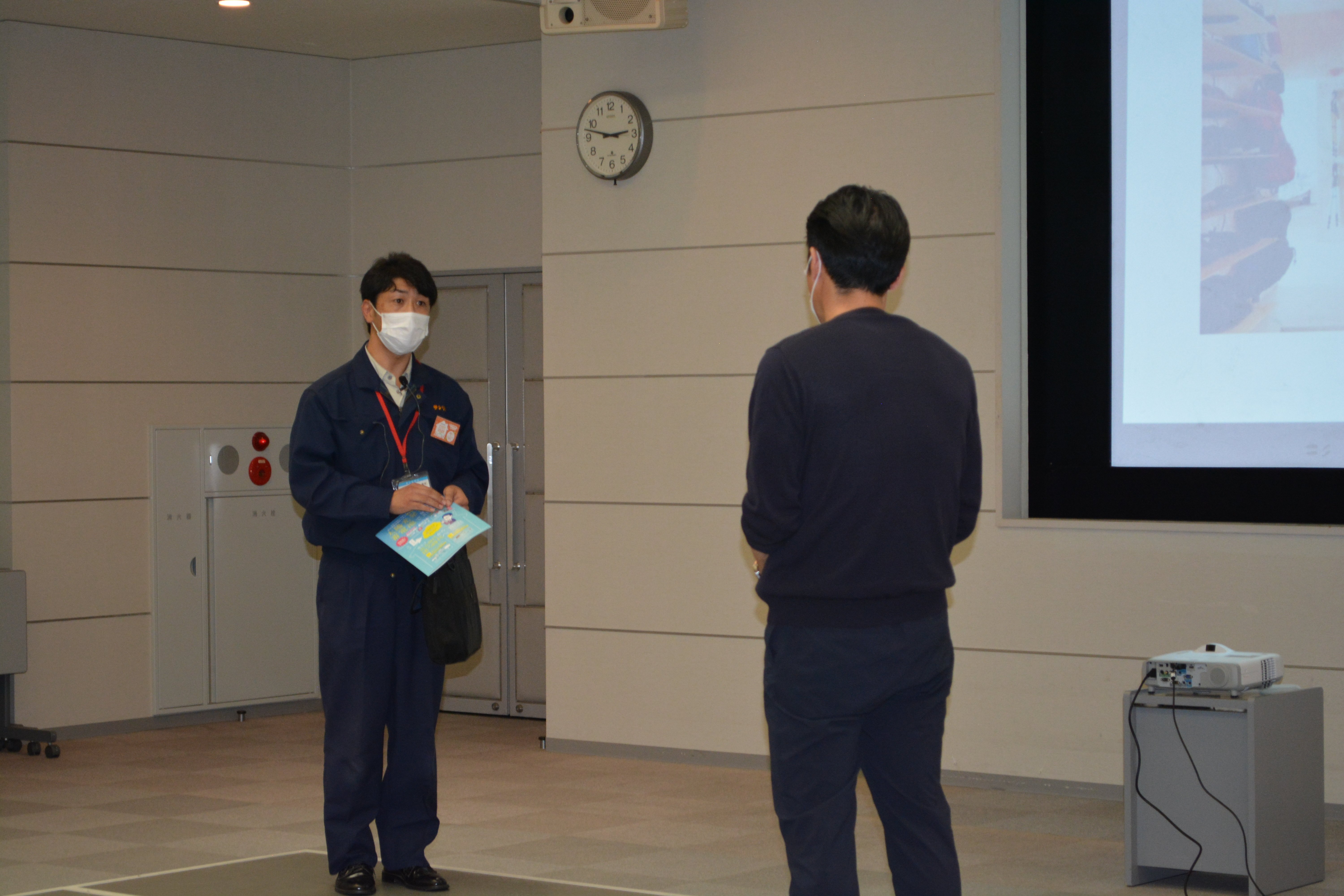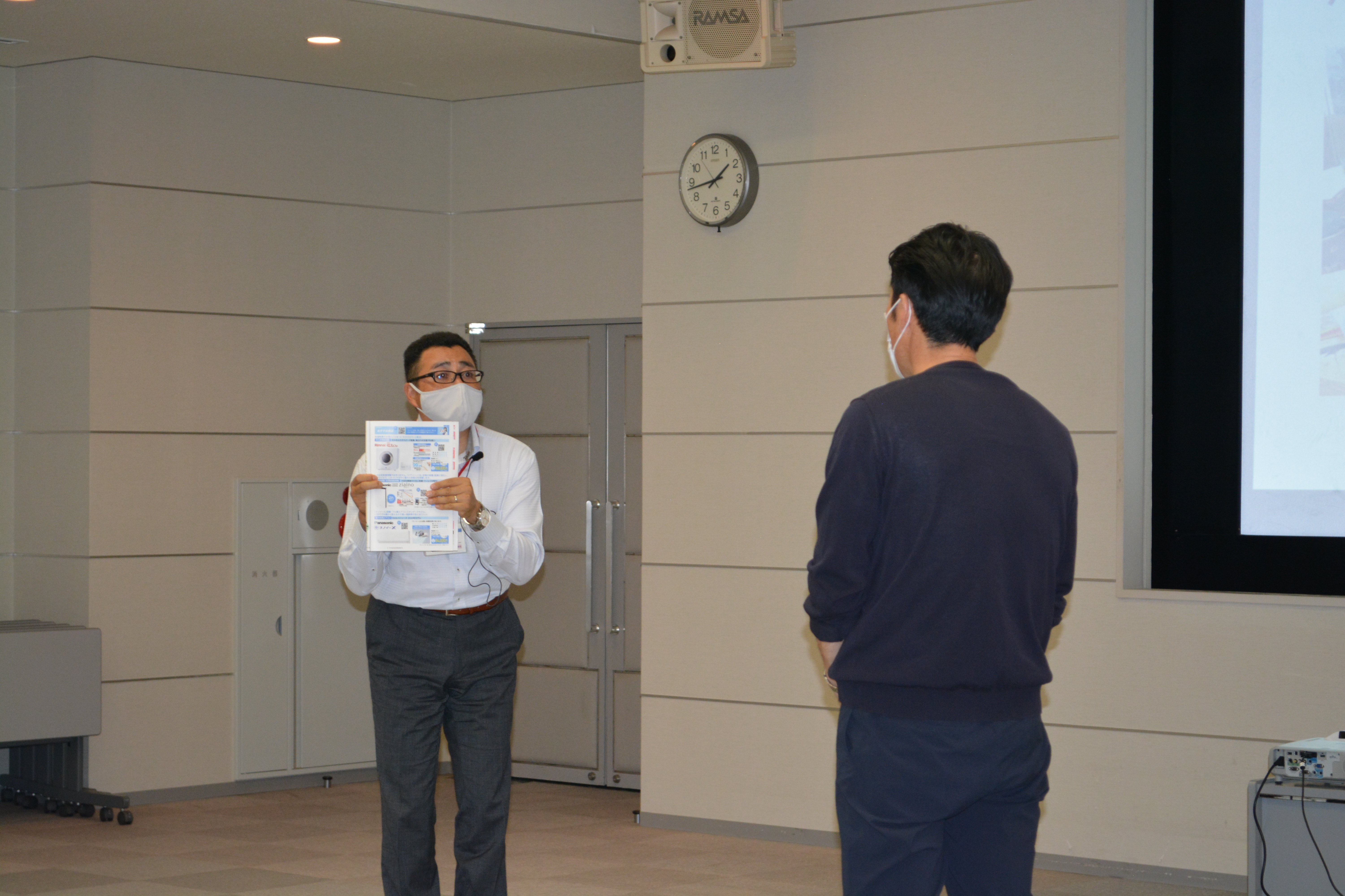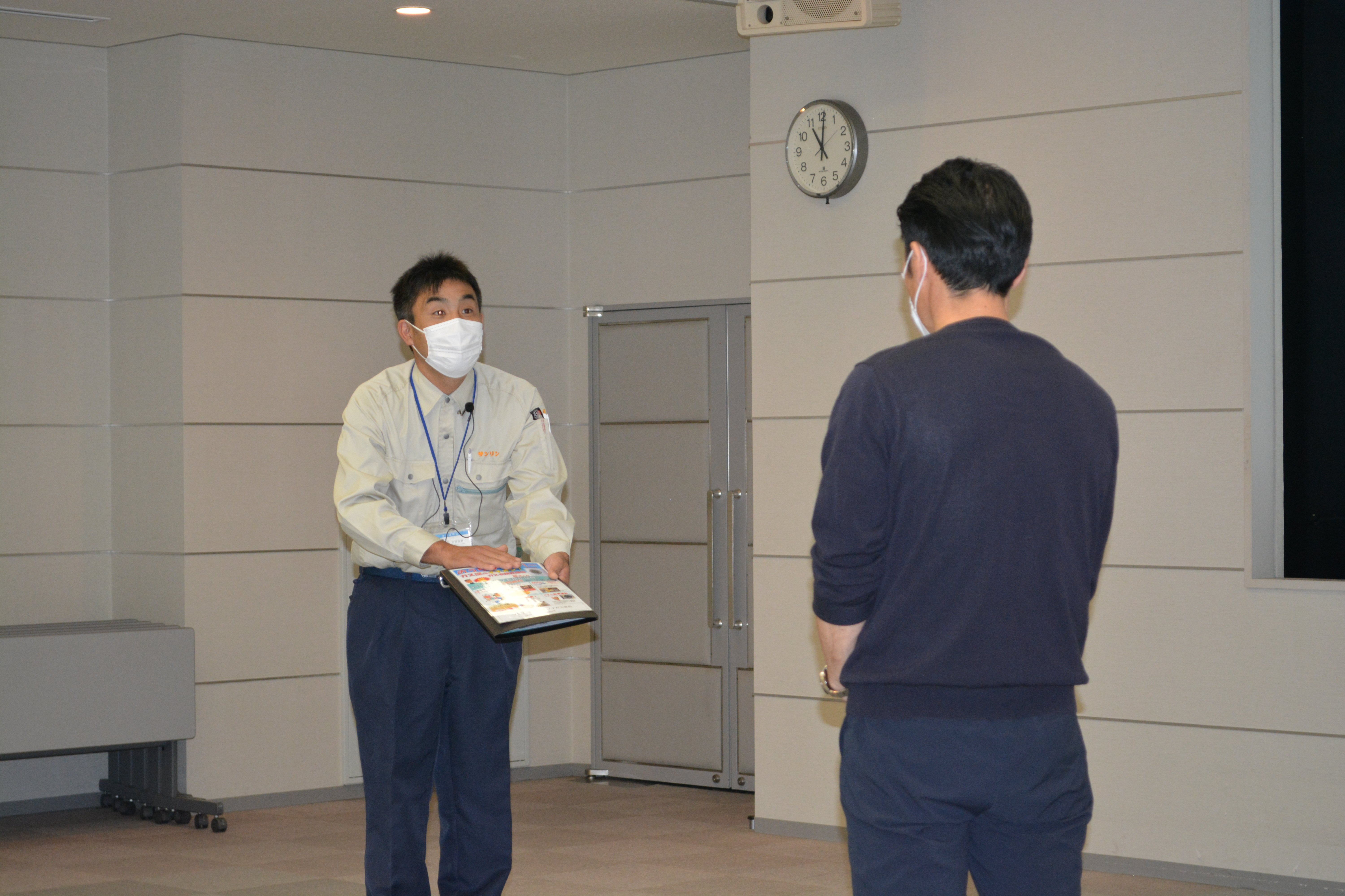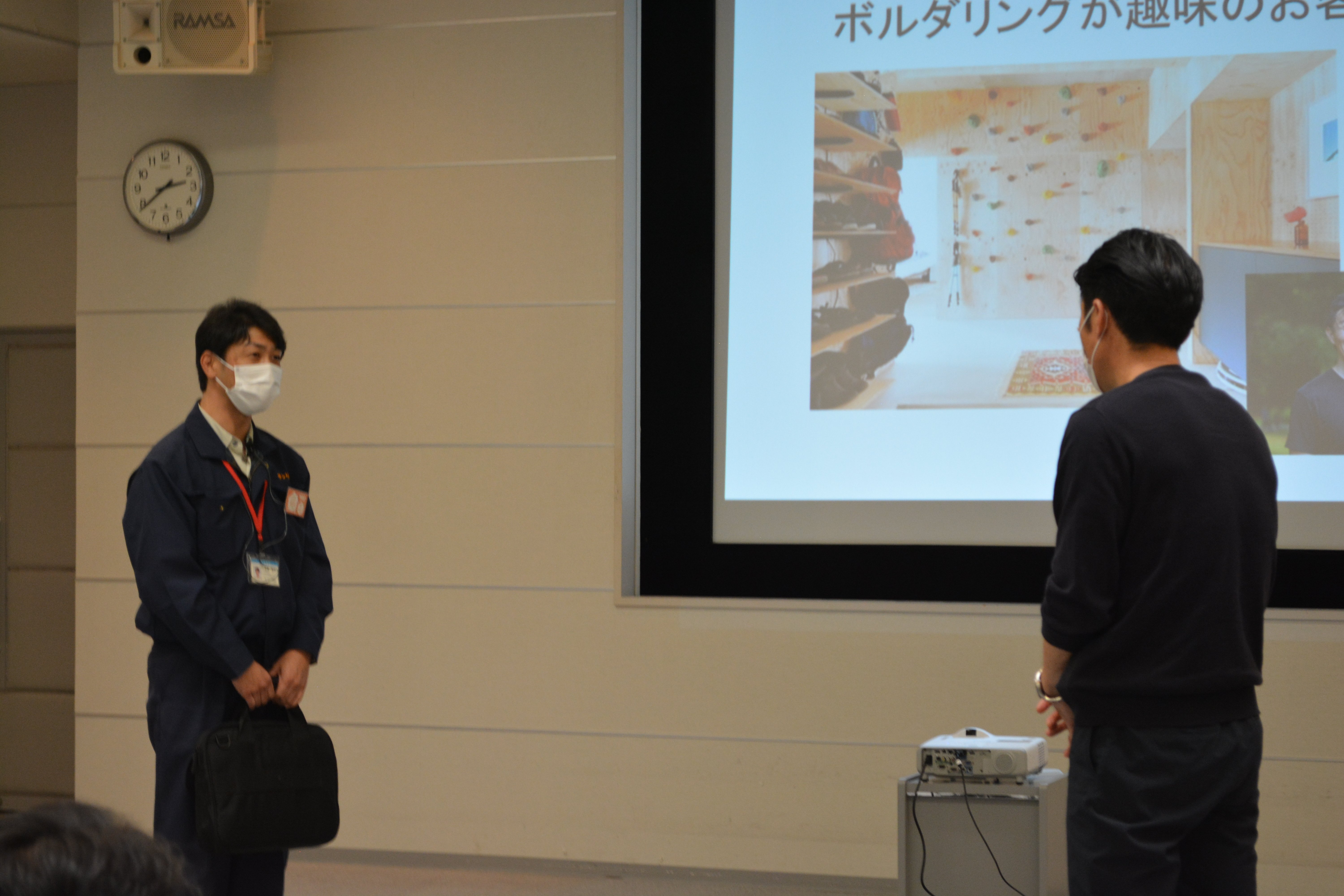 お客様役と営業マン役に分かれて10分ほど話法の練習をおこない、社員がお客様に信頼され、暮らしを快適にするお手伝いができる存在になることを目指しています。