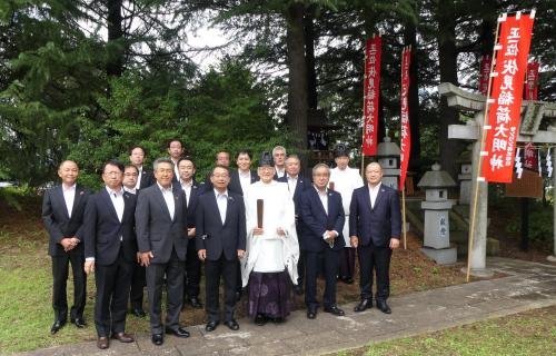 サンリングループ全役員が集まり、厳かな雰囲気の中で拝礼をします。
