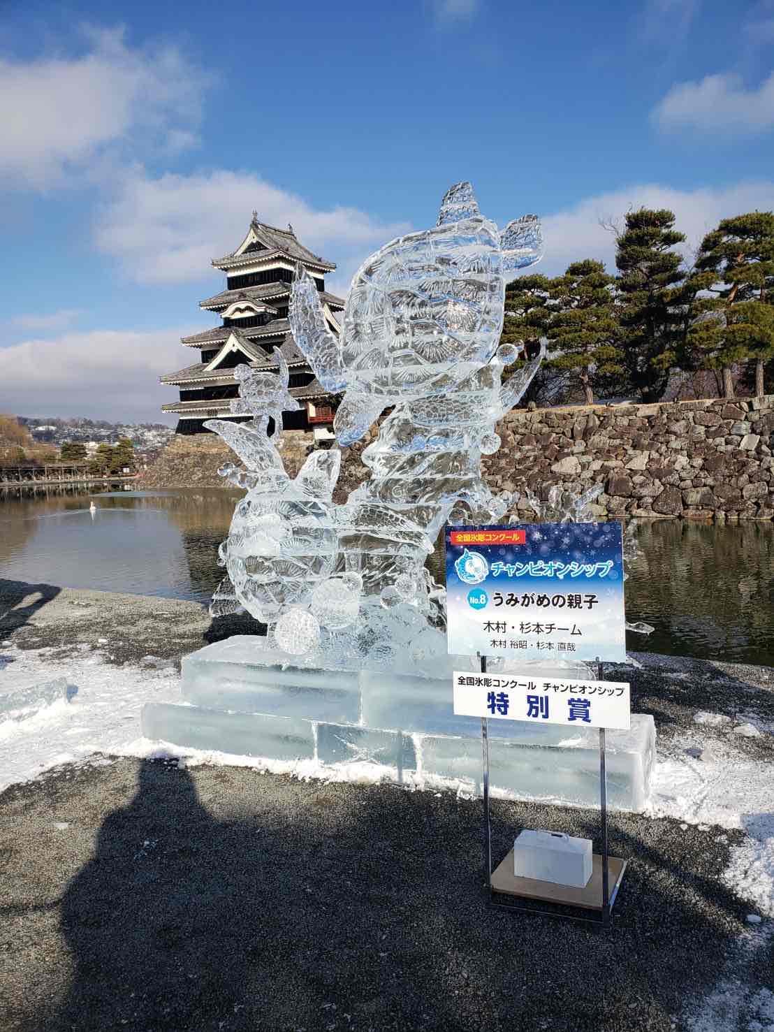 その腕を競い、メイン会場の"松本城公園"では全国氷彫コンクールチャンピオンシップが開催され、