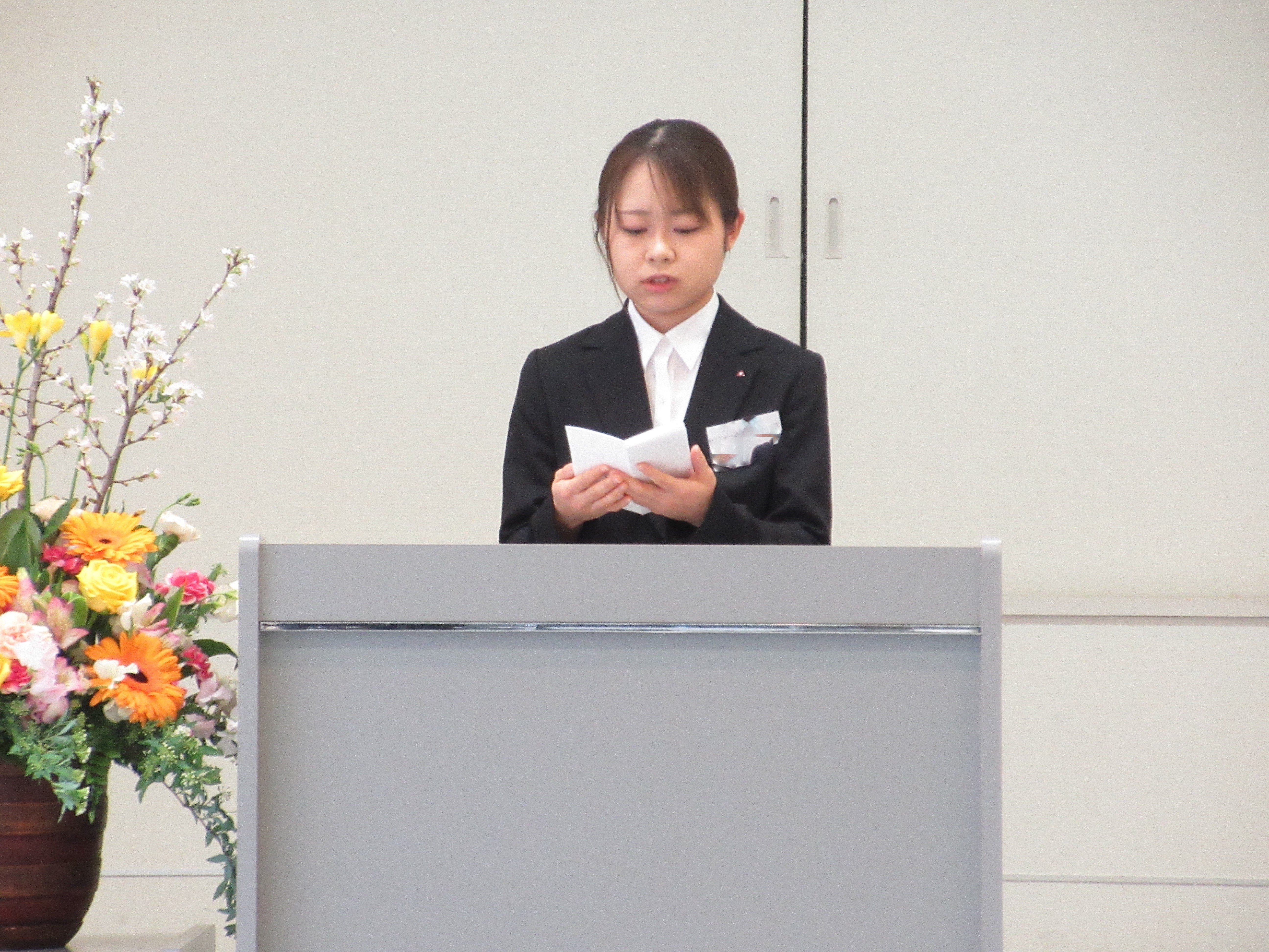 続いて、新入社員代表者から今後の決意を込めた答辞が述べられました。