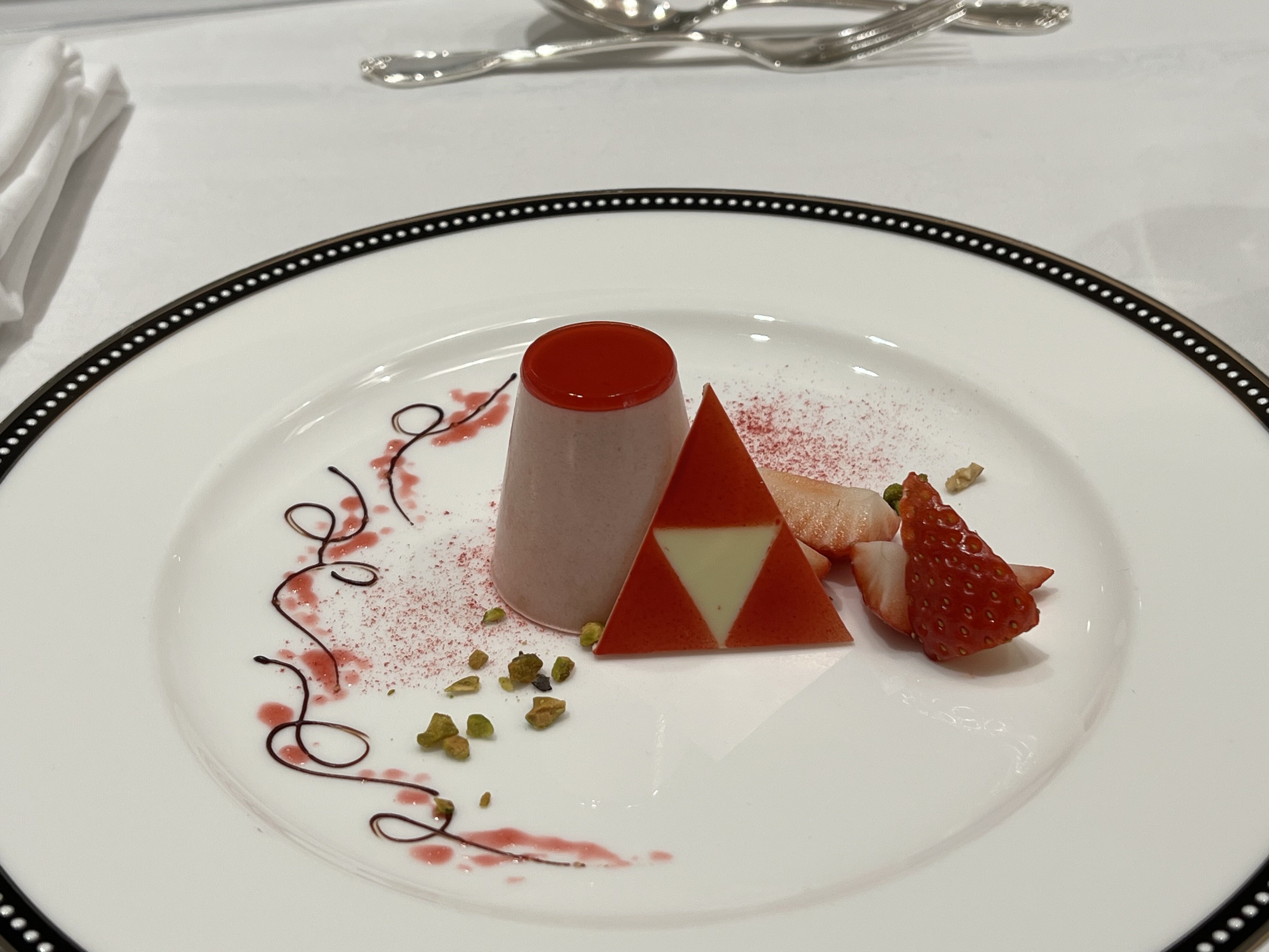 入社式の後はホテルブエナビスタ様にて昼食会を行い、当社のマークがあしらわれたデザートをご用意いただきました!
