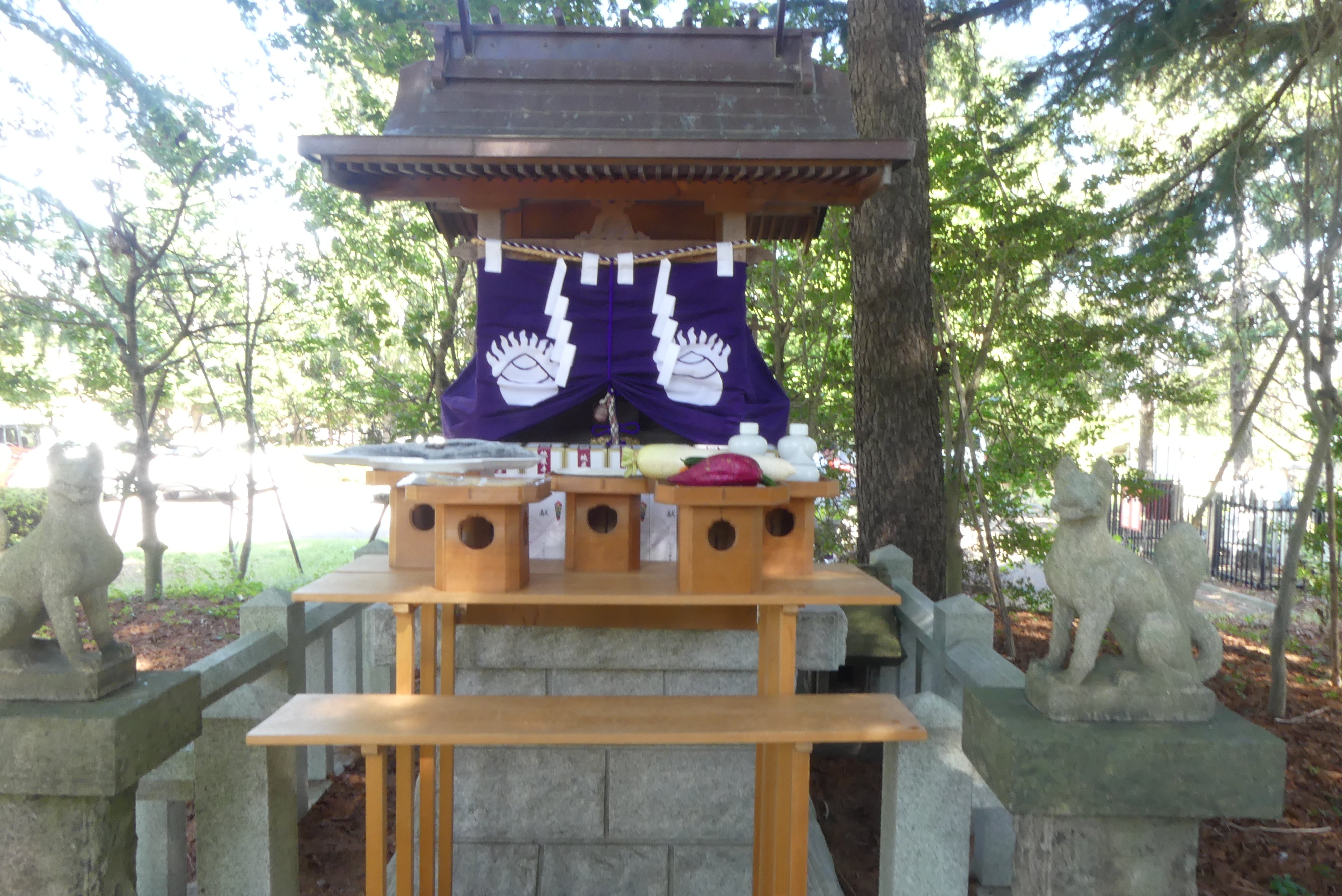 塩鱒・油揚げ・新米・野菜・お酒を神饌(お供え物)として用意しました。