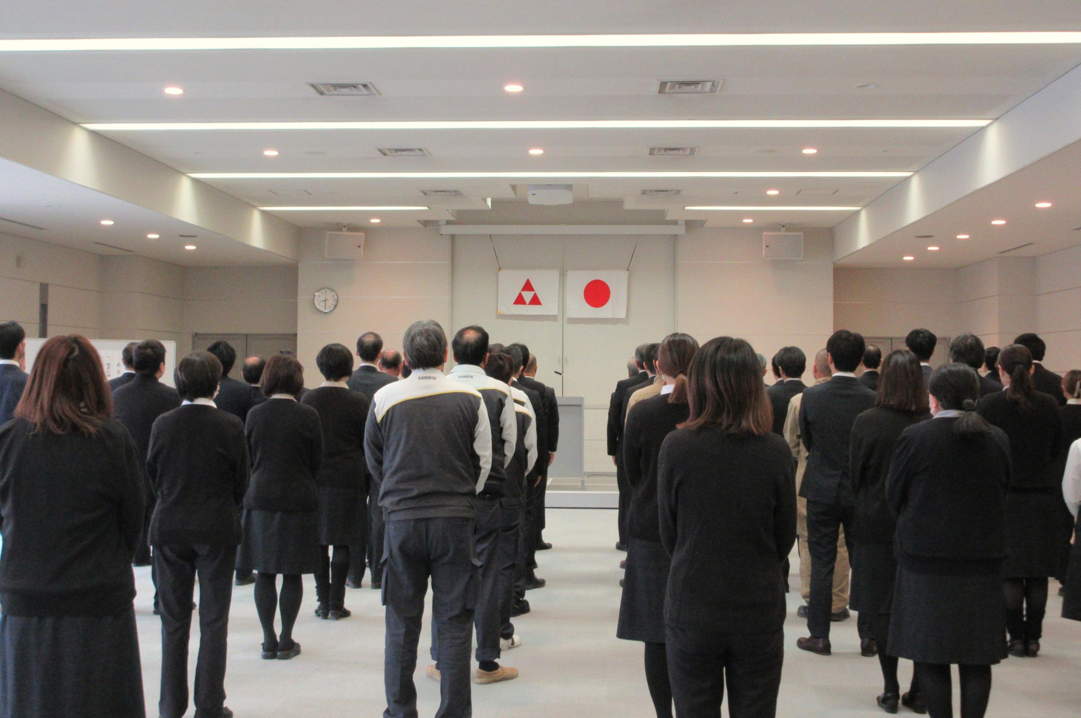 当社では、毎年仕事始めの日に関係社員がサンリンホールに集まり、新年のスタートを祝います。