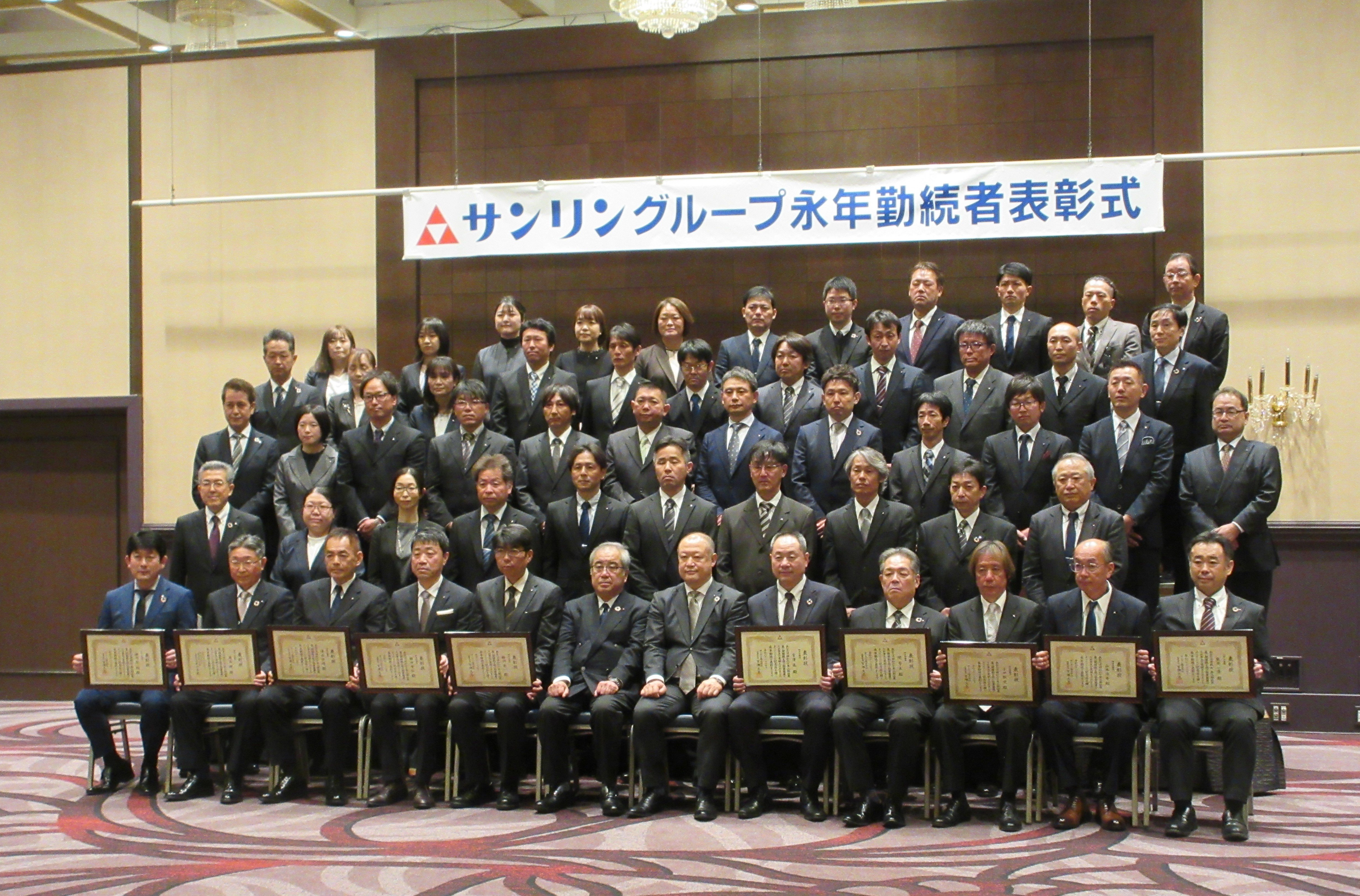 「40年、30年、20年、10年という歳月をサンリングループに身を置いていただき、グループ各社をけん引し社業発展にご尽力いただきましたことに深く、厚く感謝を申し上げます。