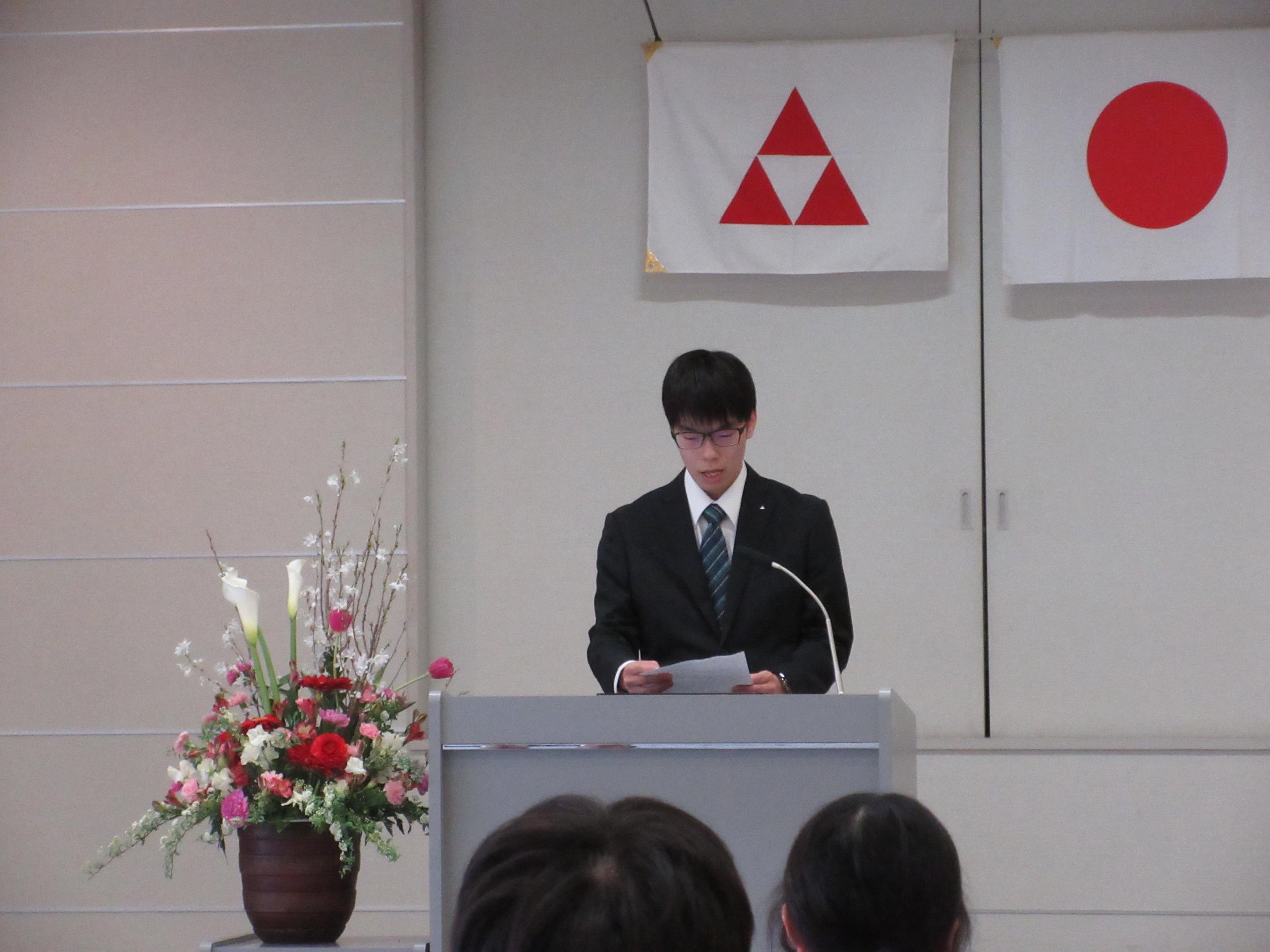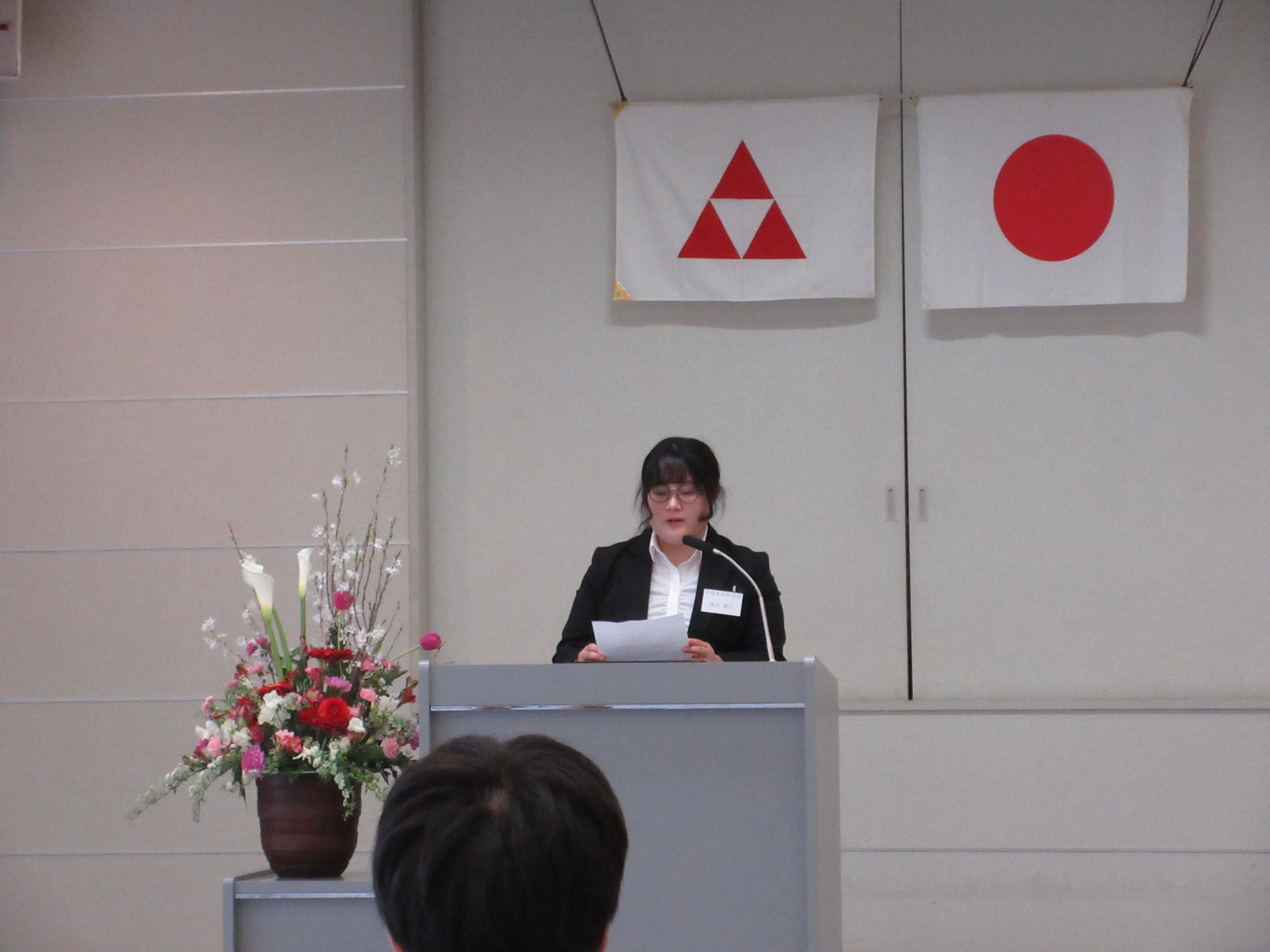 続いて新入社員代表から、決意を込めた答辞が述べられました。