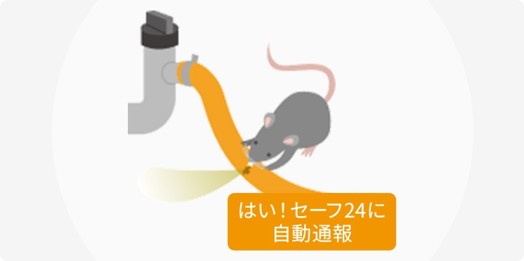 - お客さま宅でガスの少量もれがあった場合、自動的に「はい!セーフ24」に通報されます。最寄りの事業所より速やかに出動し、適切な処置をとります。