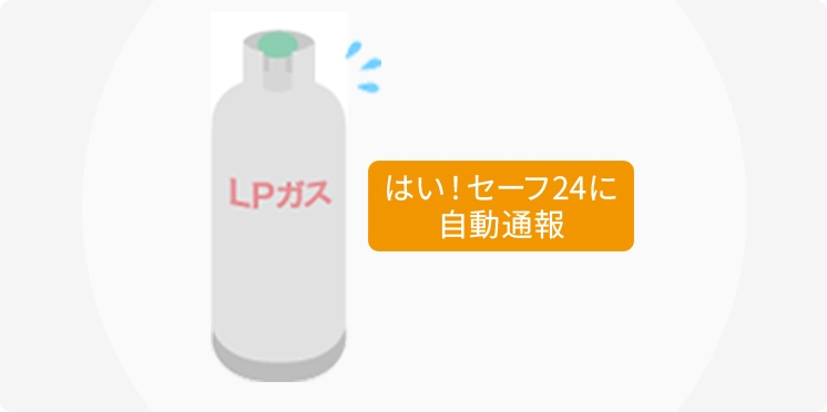 - ガス漏れ警報器がガス漏れをキャッチし、自動的にはい!セーフ24へ通報します。