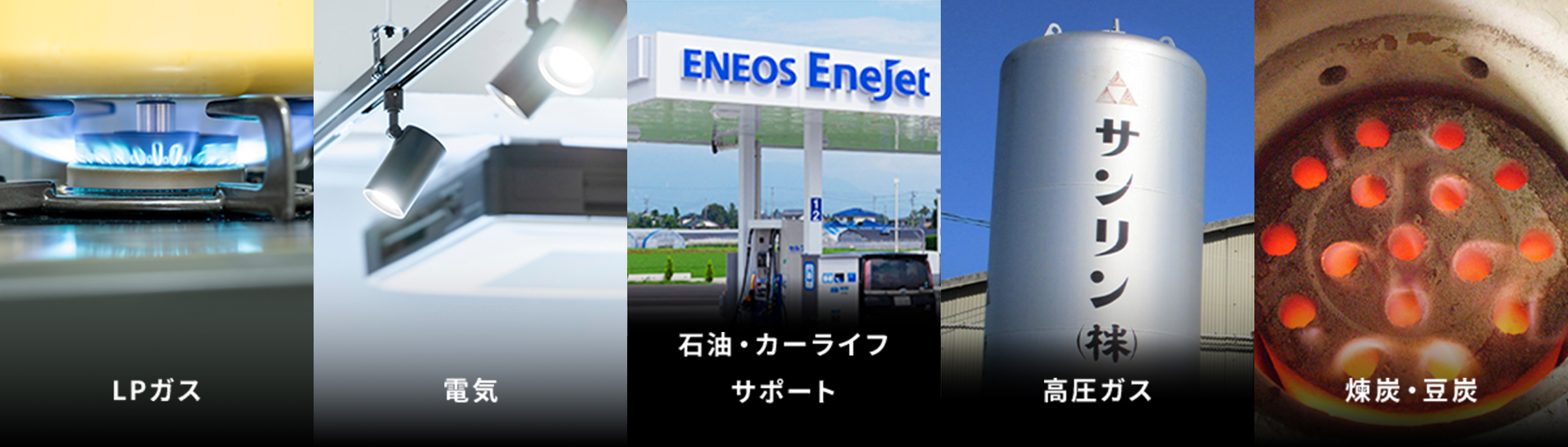 サンリンのメイン事業であるエネルギー事業。お客さまの暮らしには欠かせない「ガス」「電気」「石油」といった事業を展開しています。